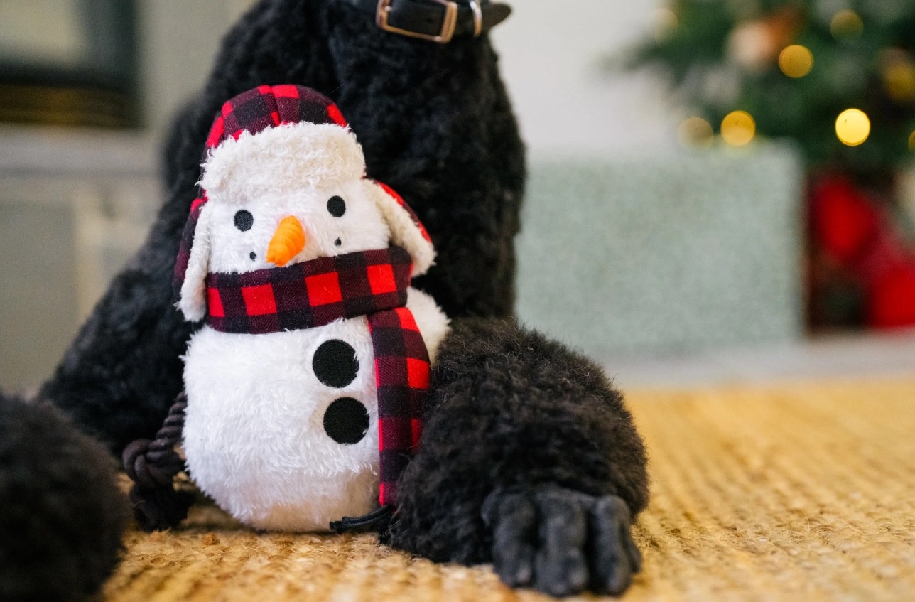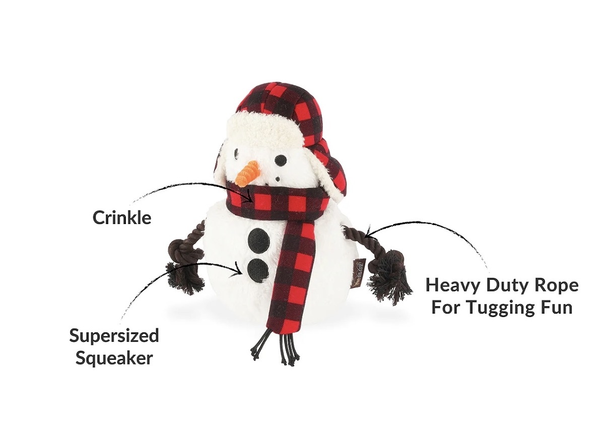 Deze sneeuwman van P.L.A.Y. voegt een winterse sfeer toe aan het speelgoedassortiment van je hond!