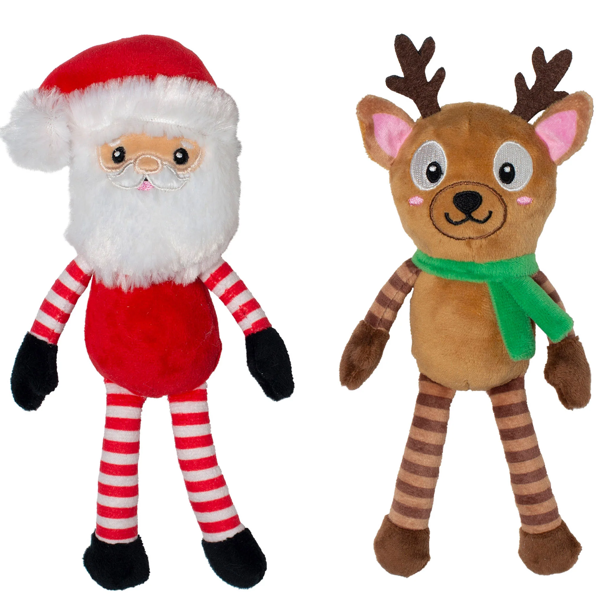 Met deze speeltjes, een kerstman en een rendier, ben je helemaal in de kerstsfeer.