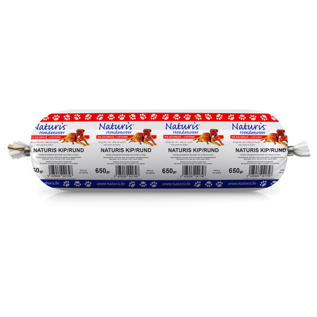 Naturis Kip en Rund worst is hypoallergeen, glutenvrij en 100% natuurlijk, zonder synthetische toevoegingen. Het bevat zeewier als bron van verschillende vitaminen en is beschikbaar in een verpakking van 650 gram. Een voedzame en smakelijke beloning voor je trouwe viervoeter.