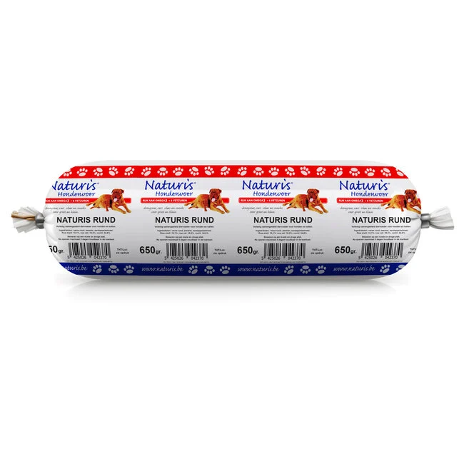 Naturis Rund worst is hypoallergeen, glutenvrij en 100% natuurlijk, zonder synthetische toevoegingen. Het bevat zeewier, een natuurlijke bron van vitaminen. De worst, verkrijgbaar in een 650-grams verpakking, is een voedzame en smakelijke traktatie voor je viervoeter.