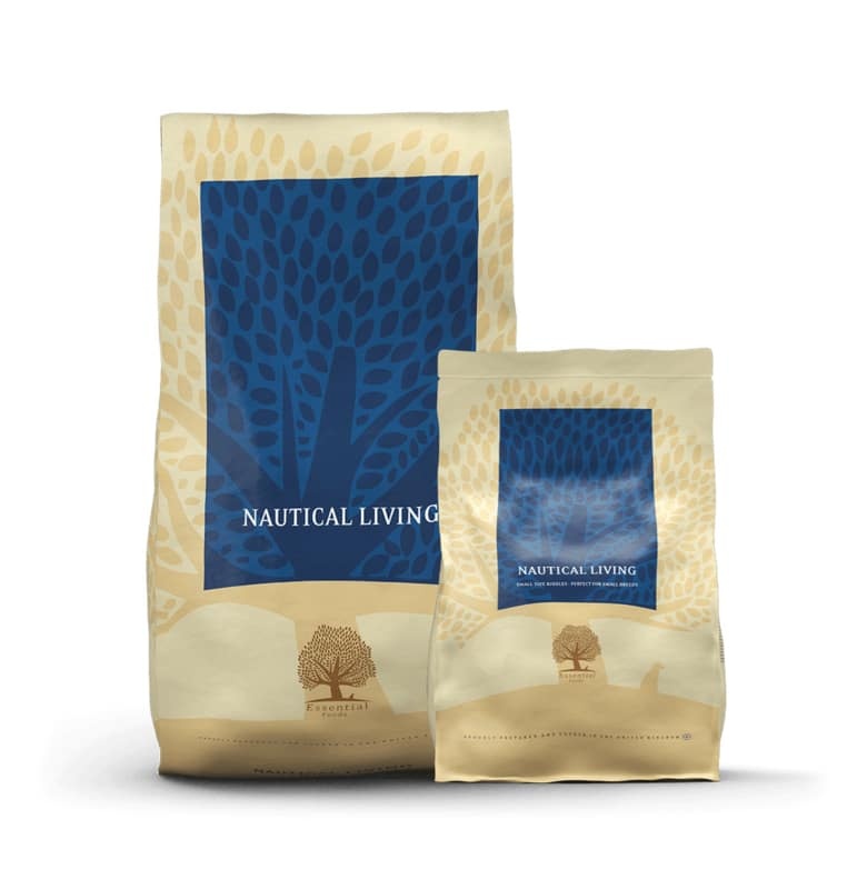 ESSENTIAL NAUTICAL LIVING is een compromisloze graan- en gluten vrije maaltijd voor volwassen honden van alle rassen. Zoals de naam al doet vermoeden, zit in NAUTICAL LIVING verse zalm, forel, haring en seizoensvis.