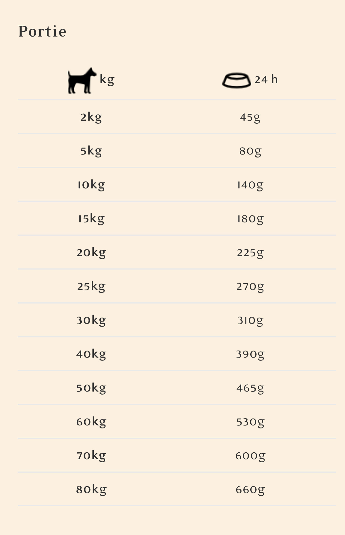 Tevens is deze hondenvoeding gedragsmatig geoptimaliseerd voeding (GGV) en is het principe van het ontwikkelen van een voeding dat het aansluit op het natuurlijke dieet van een hond. Deze voeding heeft een hoog vleesaandeel en geen ‘snelle’ koolhydraten. Dit zorgt ervoor dat de hond een stabiele bloedsuikerspiegel heeft wat positief effect geeft op het gedrag van de hond.