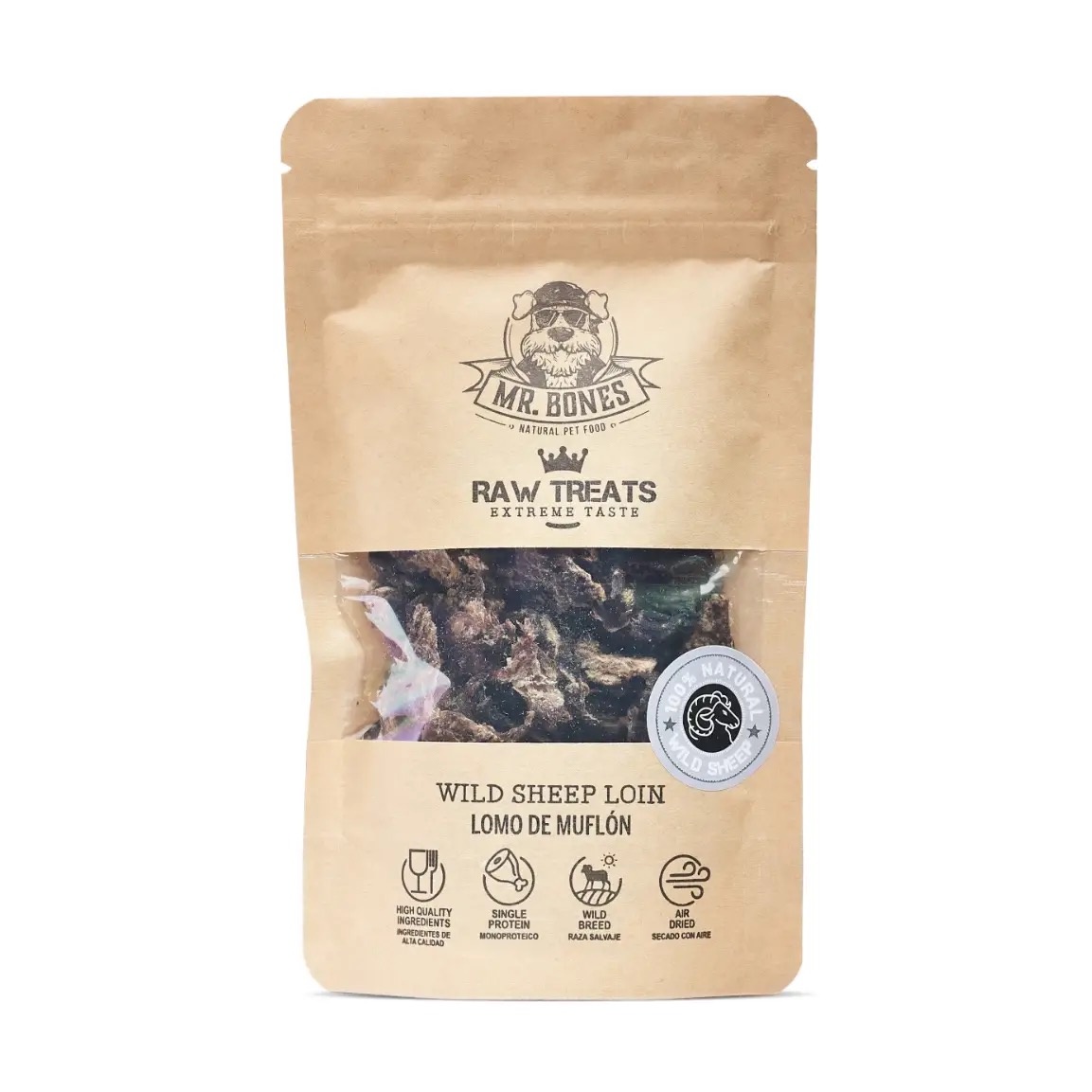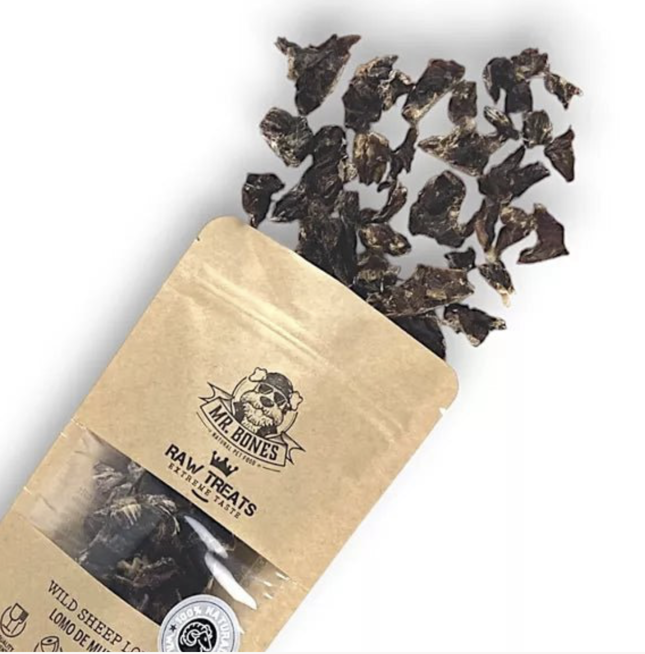 Deze heerlijke gedroogde moeflonlende (wild schaap) van Mr. Bones is een 100% natuurlijke snack!