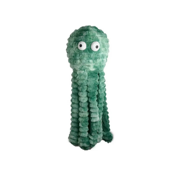 Dit speeltje is voorzien van een pieper in de bovenkant en in de tentakels van knisperpapier. De verschillende geluiden zorgen voor zintuiglijke stimulatie en betrokkenheid. De zachte onderkant maakt het niet alleen geschikt om mee te spelen, maar ook om mee te knuffelen. Met al de verschillende maten is het geschikt voor honden van alle rassen, van klein tot groot.